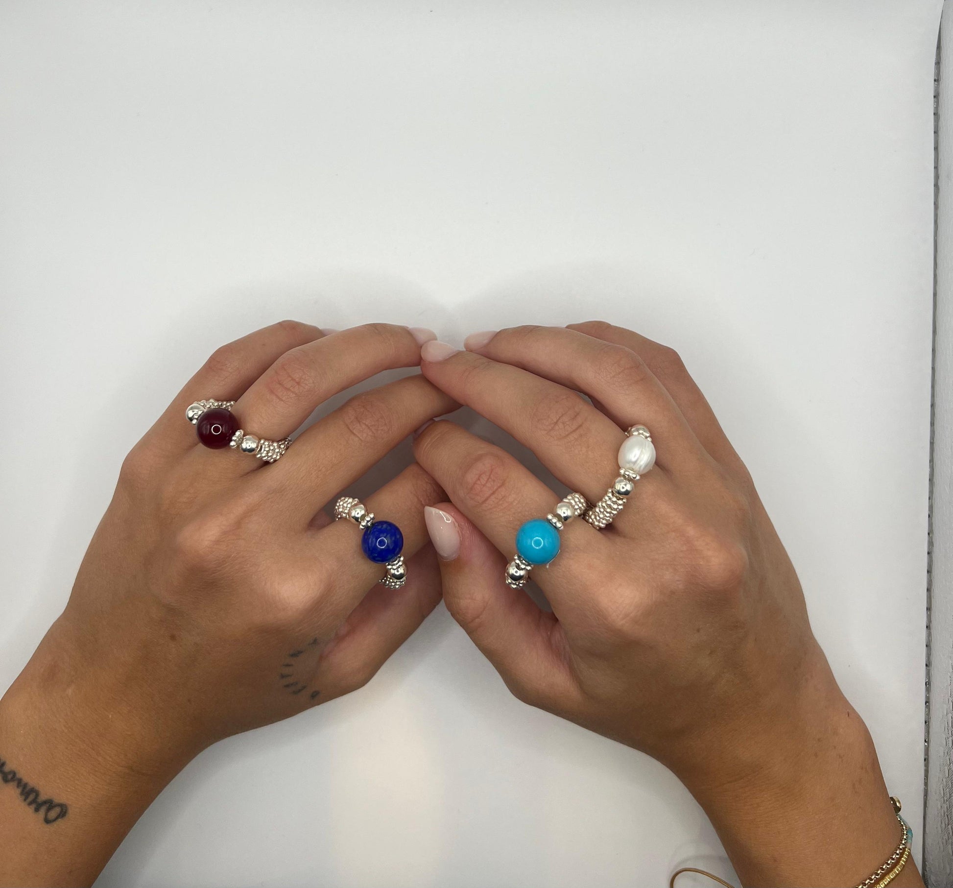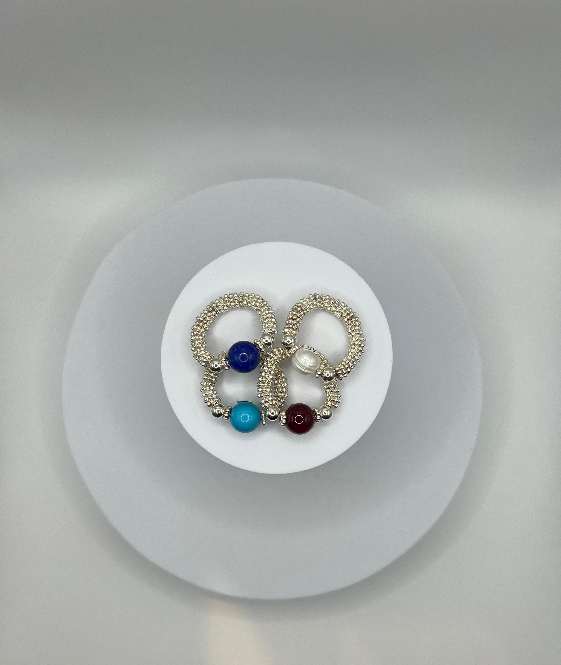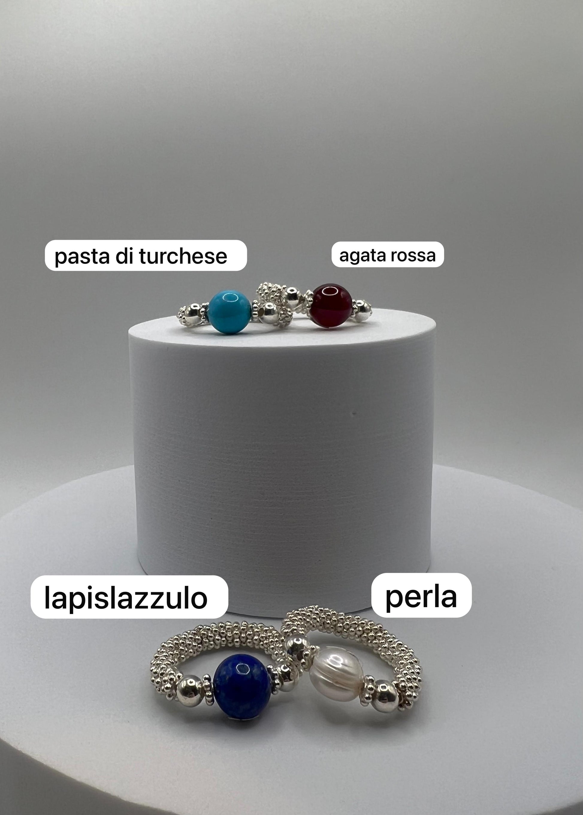 Anelli montati con eleastico in Argento 925 e pietre dure.