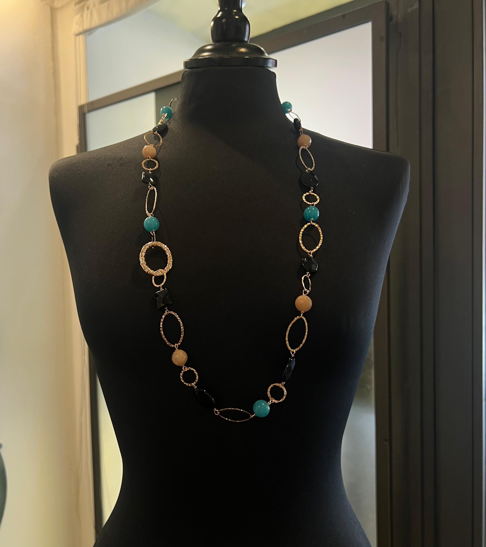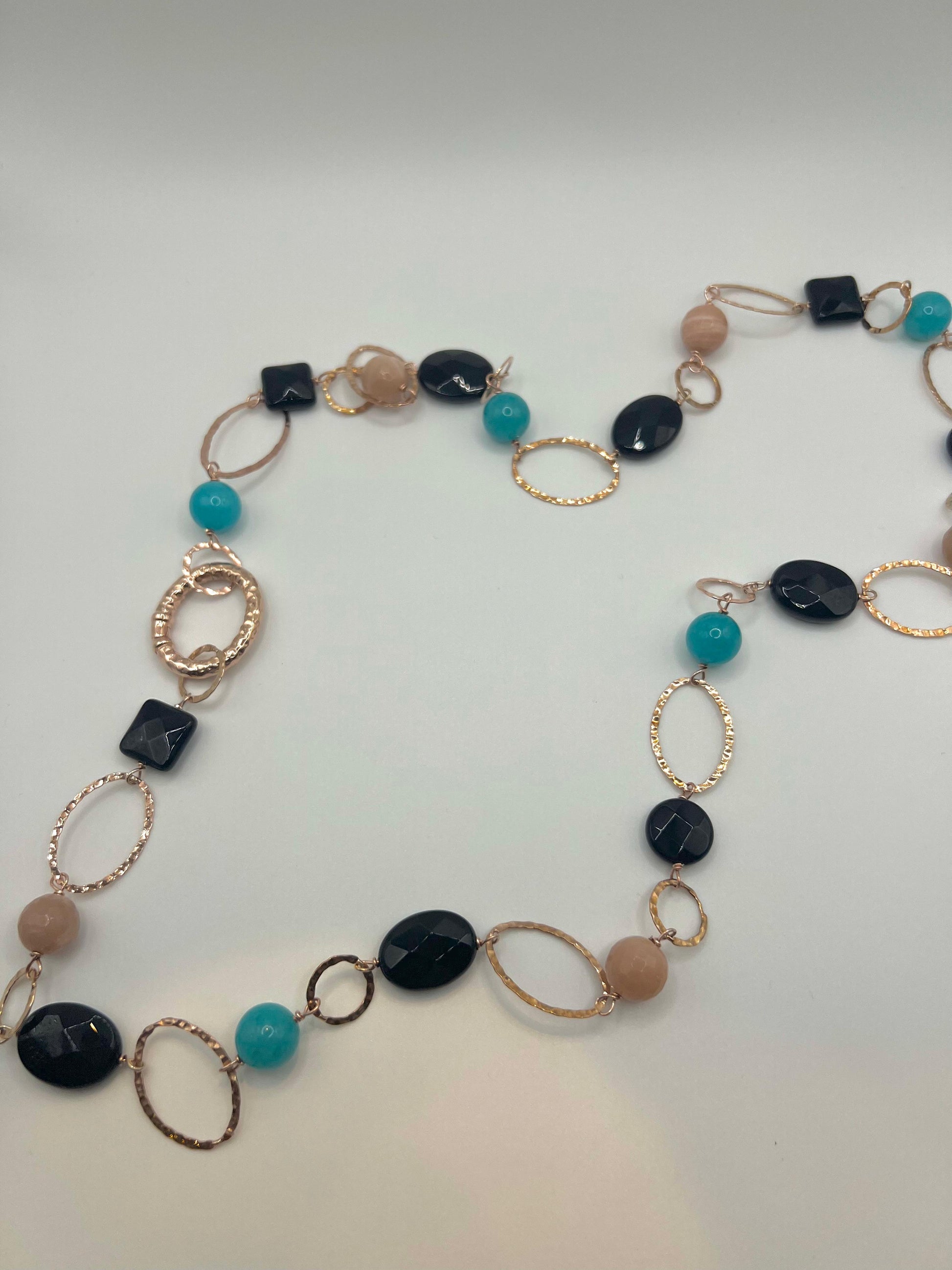 Collana in Argento 925 rosato, onice, pietra di luna e quarzo azzurro