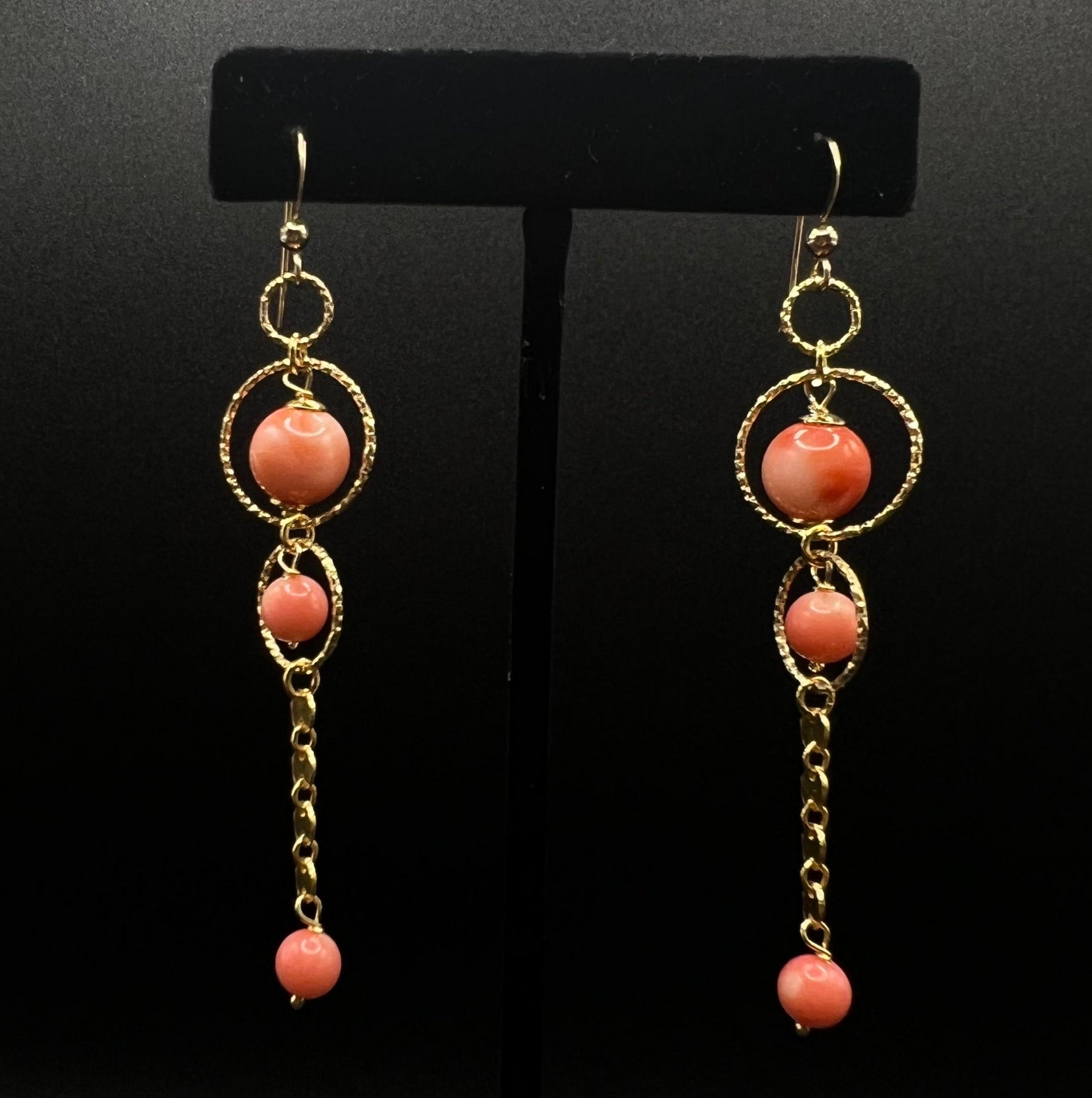 Orecchino in Argento 925 dorato e corallo. Lavorazione artigianale