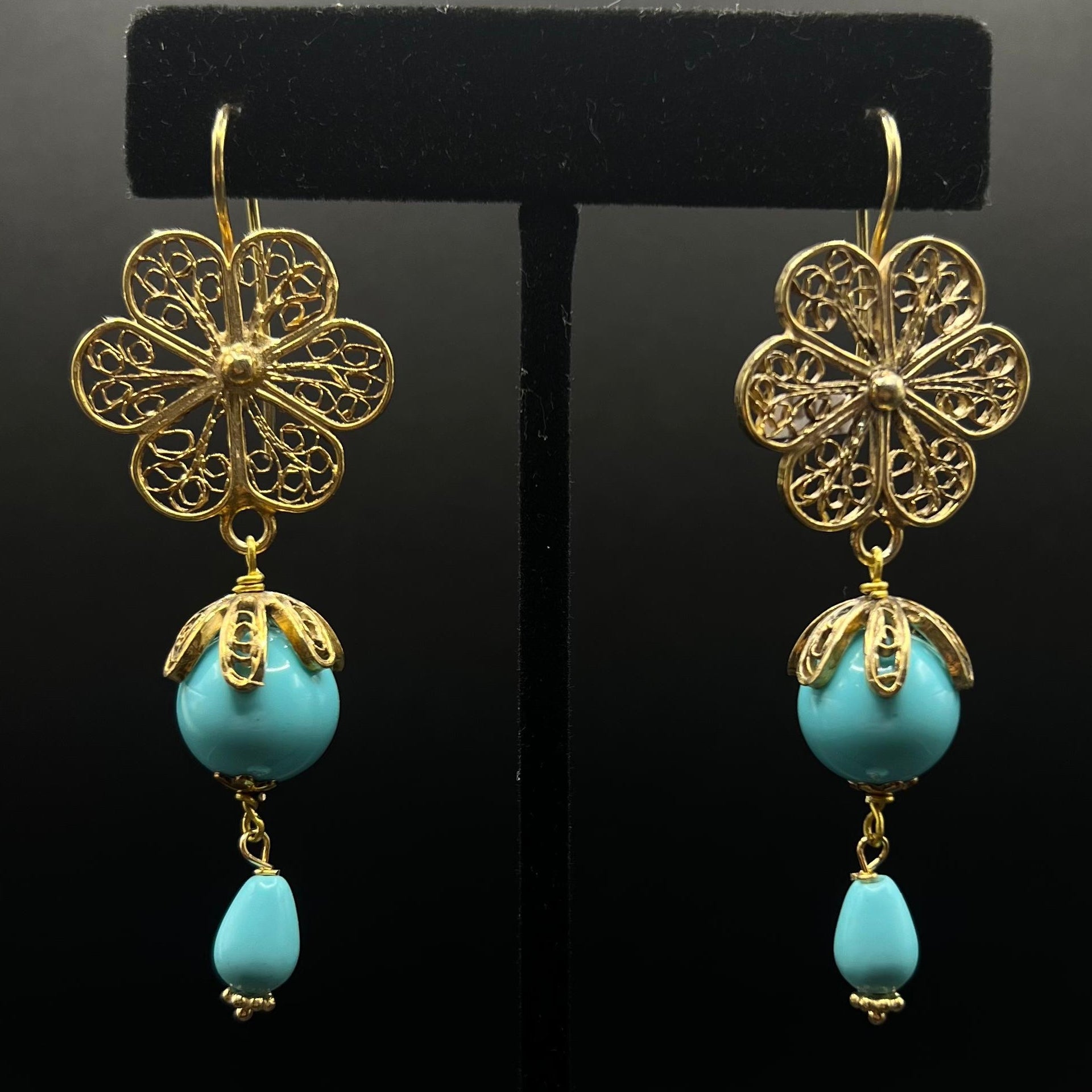 Orecchino in Argento 925 e pasta di turchese. lavorazione artigianale.